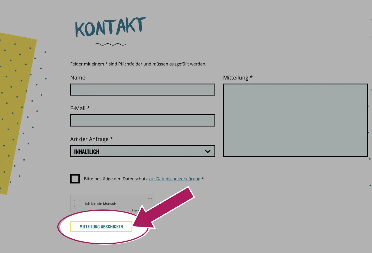 Klicke jetzt auf Mitteilung abschicken.